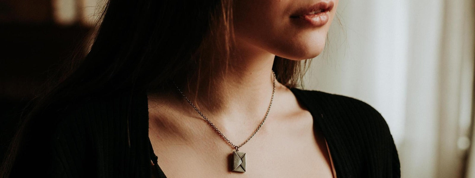I wanted to capture the romance of carving initials into a tree and turn it into something you can wear forever. This stainless steel necklace measures 22mm wide by 25mm...